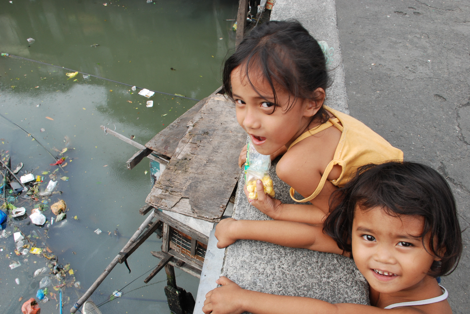 Tiny shacks built on stilts lined each side of the river. The river itself was full of garbage and was infested with vermin. A gray silt seemed to suspend in its stagnating waters. A couple of young girls perhaps no more than 7 years of age ran around me playfully. I asked them where they lived. They pointed over the side of the bridge. I looked down. There was what appeared to be no more than a shopping cart with a few makeshift plywood panels strapped upon wooden stilts. It seemed hard to believe that humans could inhabit such a construction which bore a greater resemblance to a makeshift chicken coop than a home.